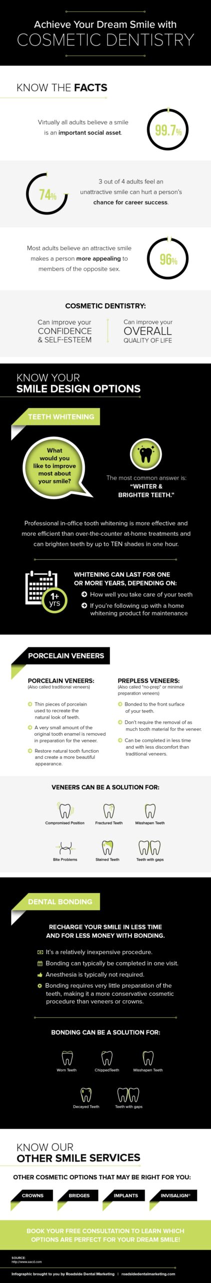The most beautiful thing about smile design? Your dream smile can become a reality, increasing confidence and self-esteem and improving your overall quality of life. While every smile design plan is unique, the infographic below describes some of the possible treatments your dentist may recommend.